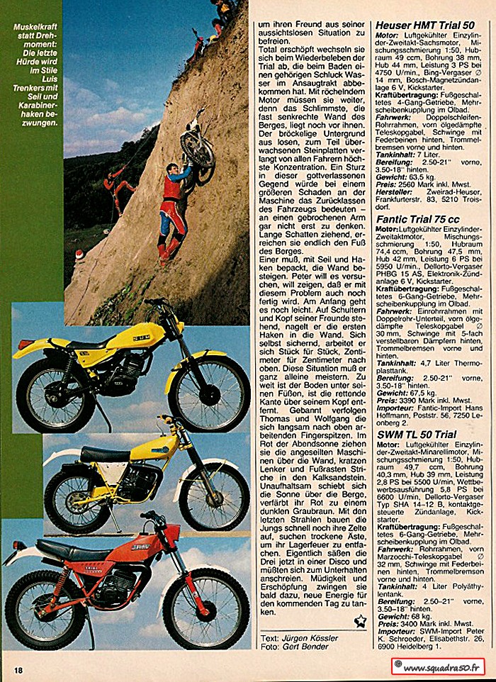 ESSAI TRIAL ( ALLEMAND) HEUSER.HMT TRIAL 50/ SWM / FANTIC ( 1981)