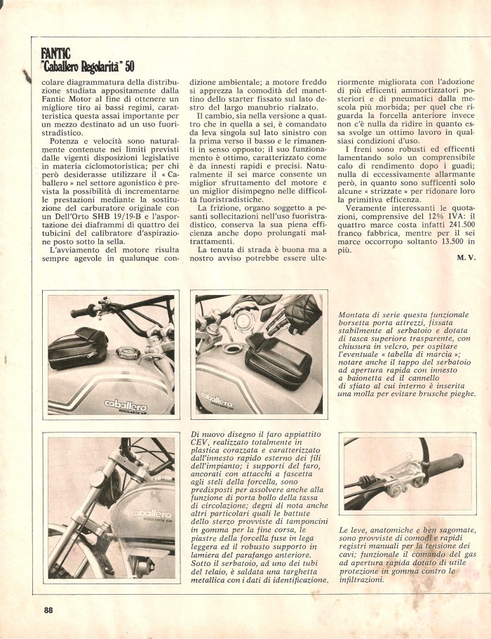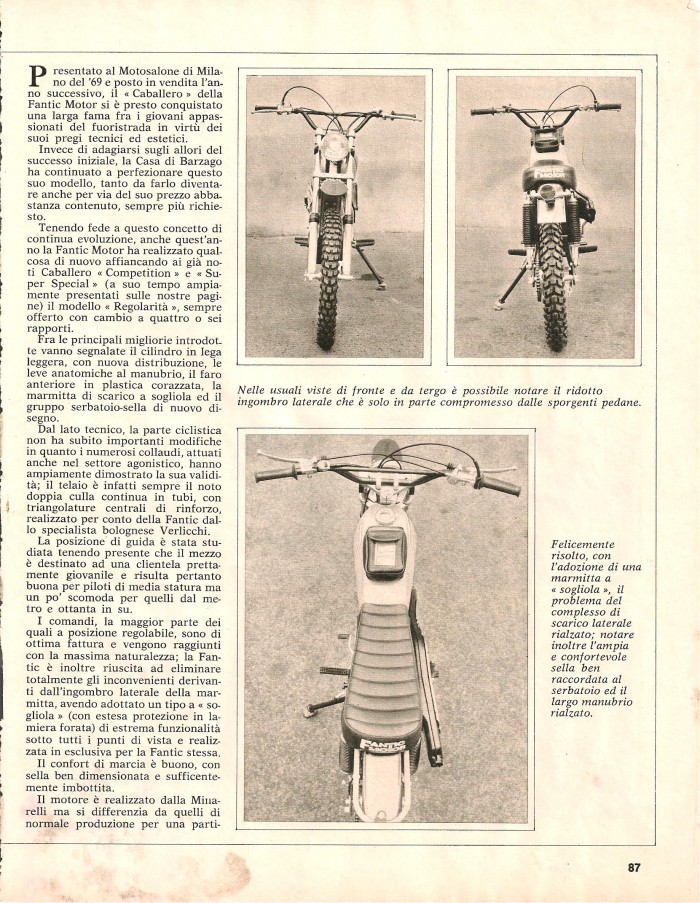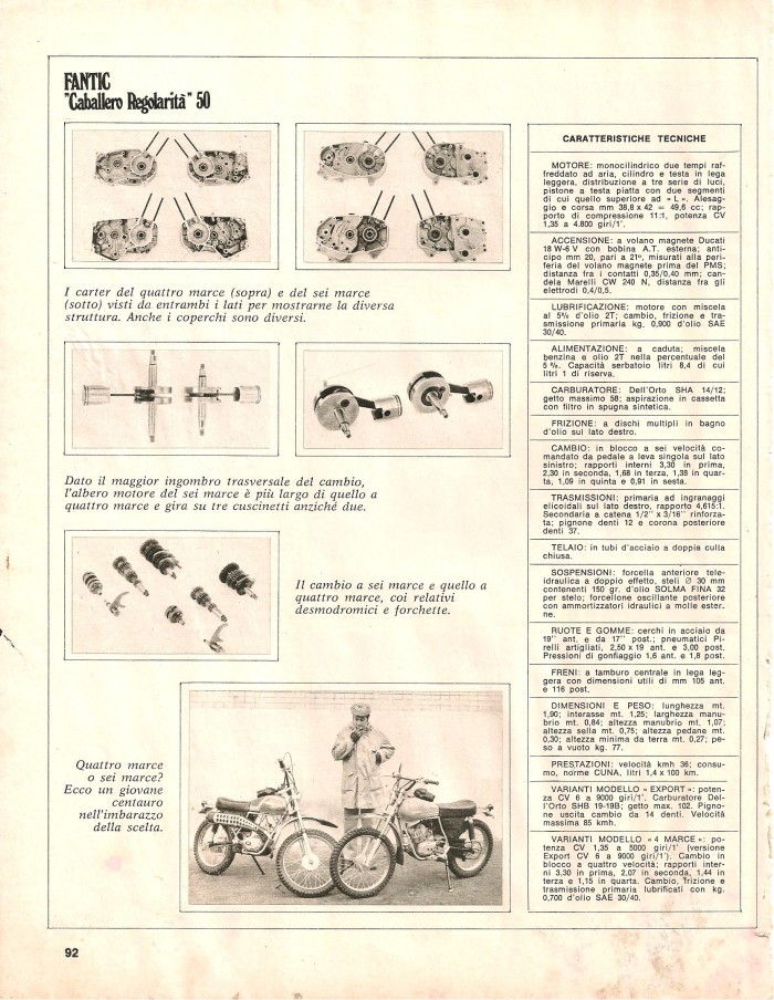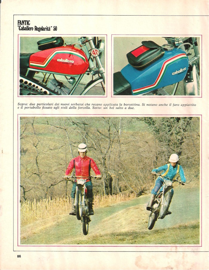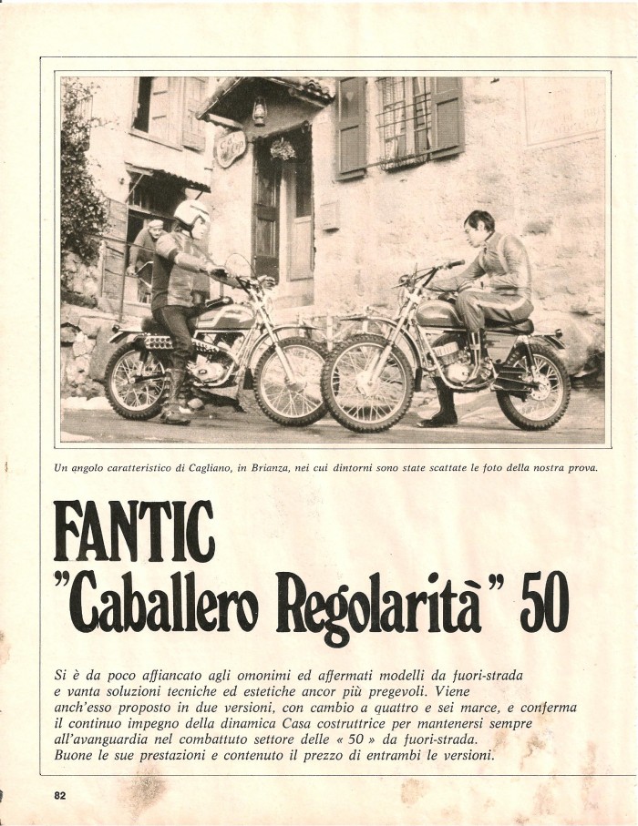 ESSAIS ( ITALIEN) FANTIC "CABALLERO REGOLARITA " 4 ET 6 VITESSES 1975