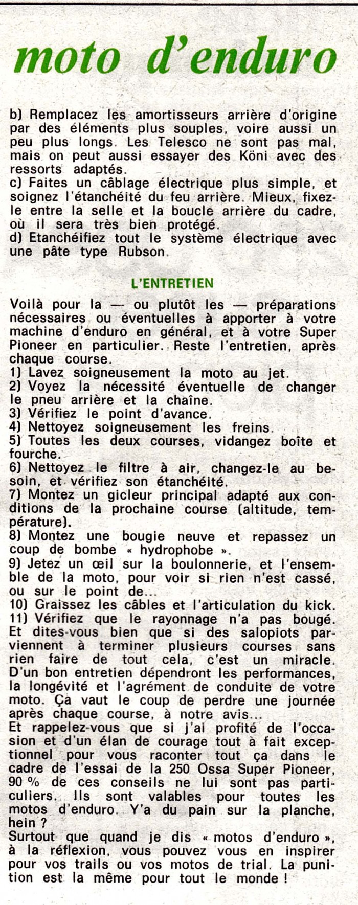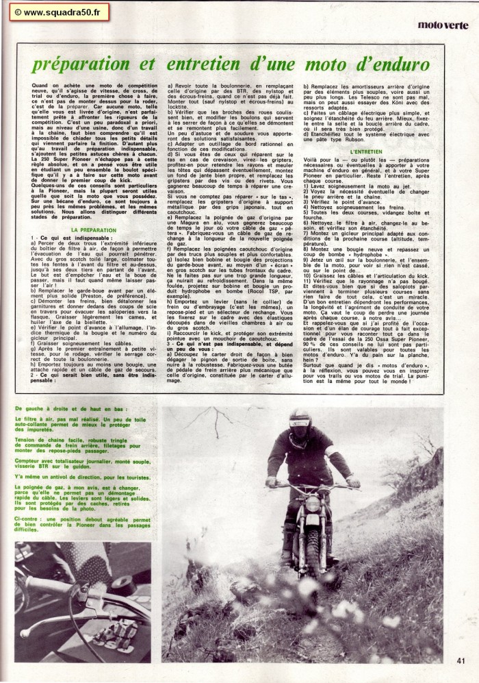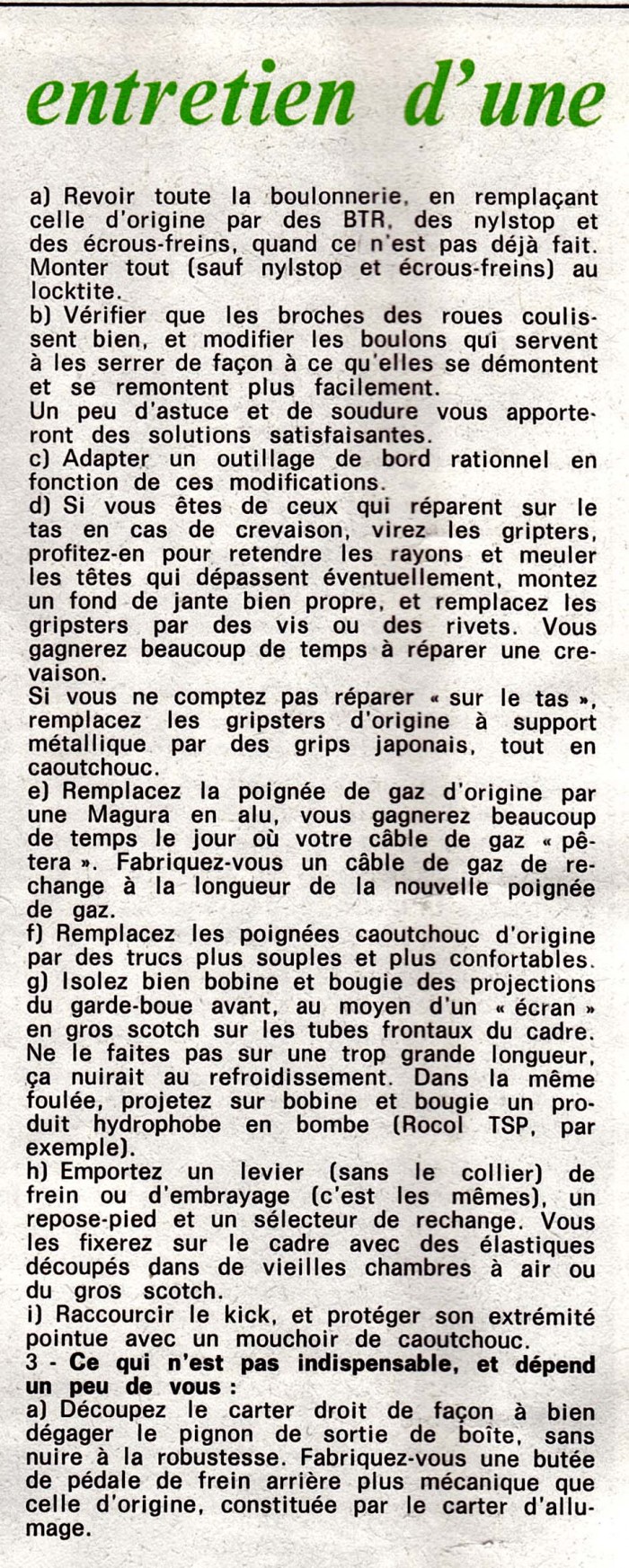PRÉPARATION ET ENTRETIEN D'UNE MOTO D'ENDURO -- MOTO VERTE ANNÉE ??