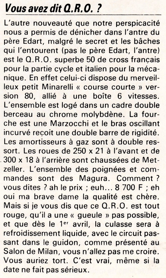 Nous allons essayer de lui rendre hommage, grâce à ce site, et en profitez pour redonner leurs légitimités au tasses !!Moto(s) : QRO 50 Endurisé (le seul)