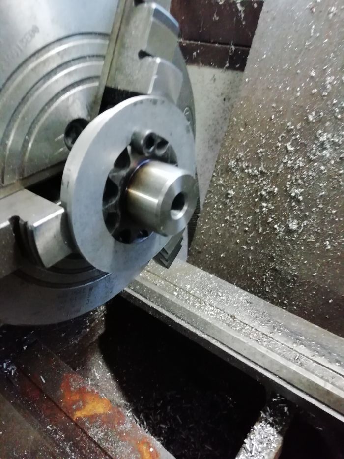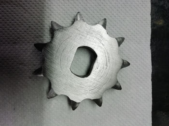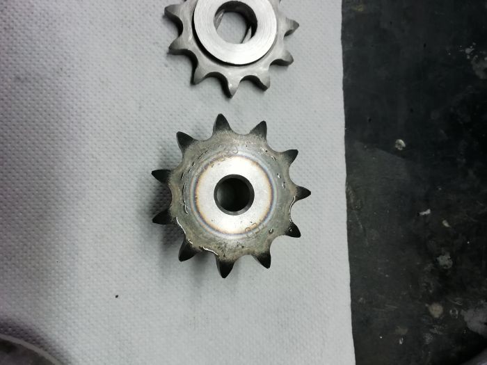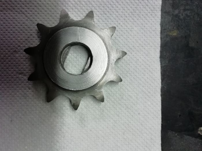 Après j'ai modifié un pignon industriel en 12,7 qui a l'avantage d'avoir la denture trempée.