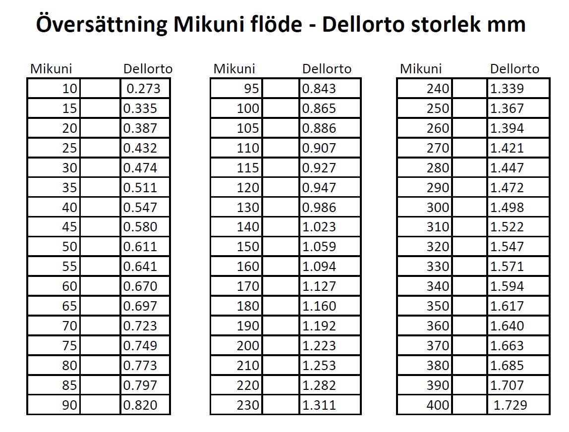 CORRESPONDANCES ENTRE GICLEURS AMAL ET MIKUNI OU DELLORTO