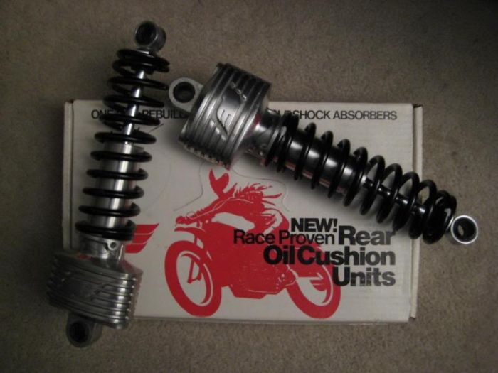 J'ai aussitôt contacté Richard pour en savoir un peu plus sur les cartouches de fourche GP20. Elles se montent dans les fourches d'époque, les Marzo 35 par exemple. Une Honda Elsinore équipée de cartouches et de leurs amortisseurs réglables dans tous les sens a remporté le championnat VMX anglais cette année. Un produit certes cher, mais fait sur mesure et monté par leurs soins. Pour qui va vite, ce peut être un bon investissement, je pense.