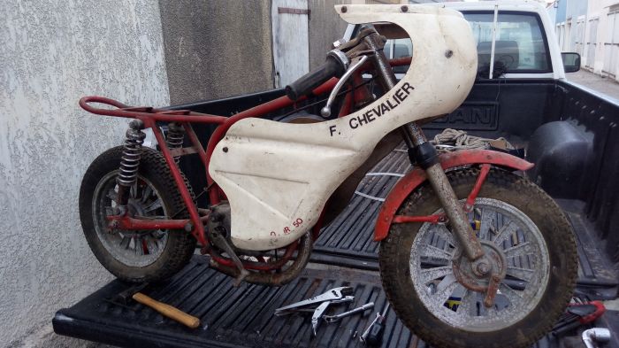 j'ai contacté Mr Chevalier qui a quelques souvenir de cette mini moto ,apres lui avoir envoyé des photos j'attends des nouvelles de son histoire
