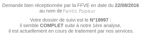 La réception du dossier a été acquitté favorablement par la FFVE