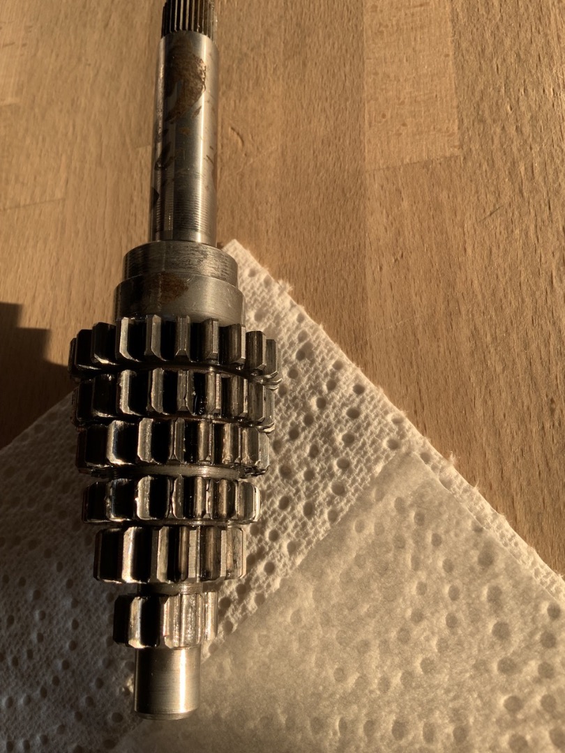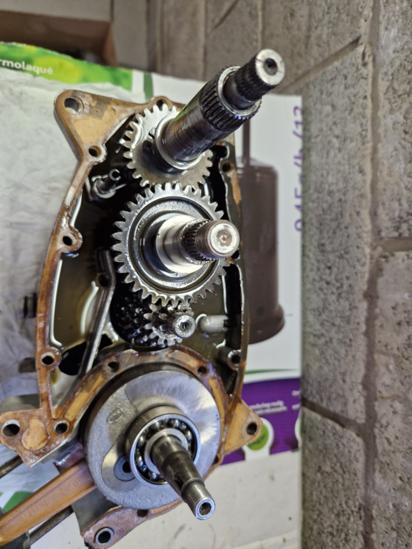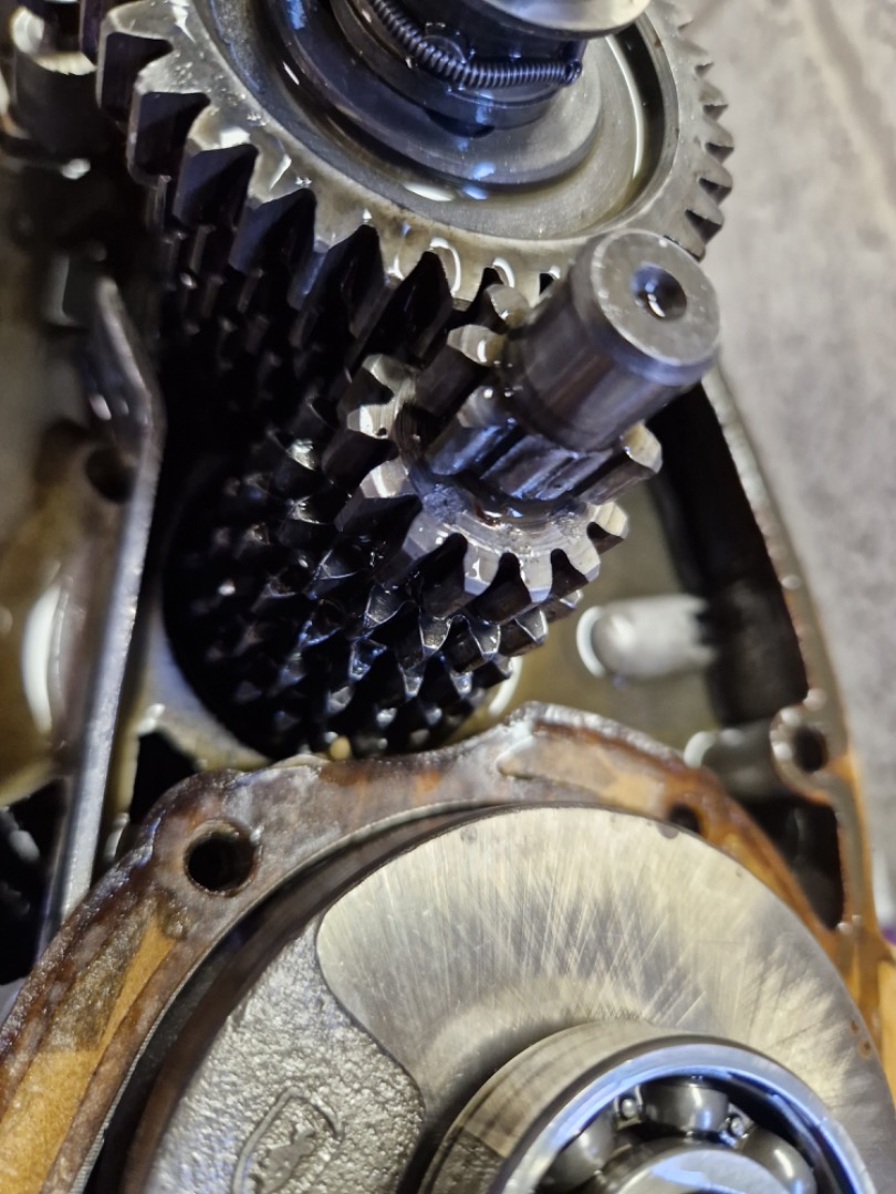 Deux dents arrachée sur le pignon de première, trois quatre et cinq écrasement ou déjà des perte de matière.